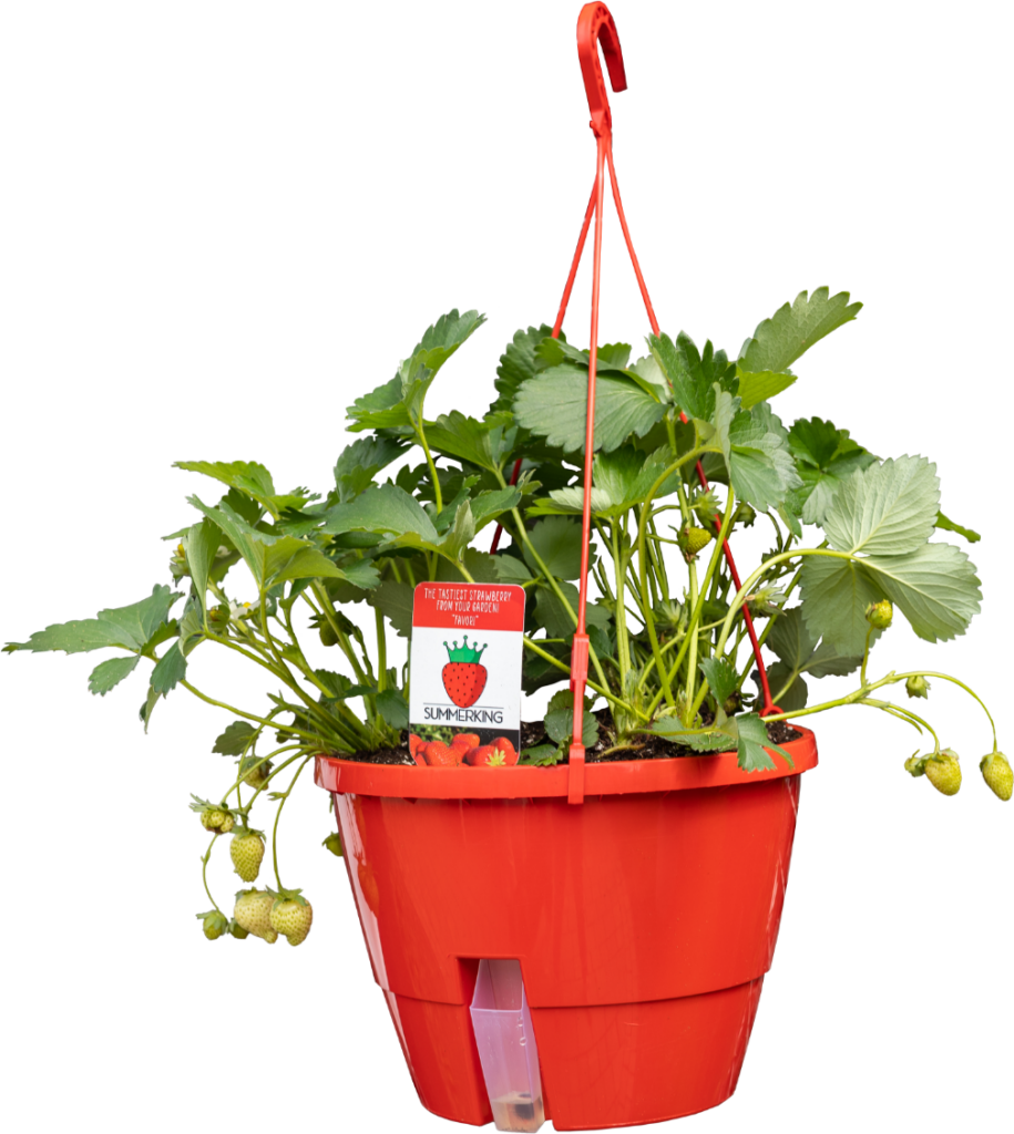 Binnen Summerking hebben we in het standaard assortiment 2 soorten hanging baskets of hangpotten. Onze hanging baskets zijn altijd voorzien van 3 doordragende aardbeienplanten zodat u een lange periode kunt genieten van de lekkerste aardbeien.