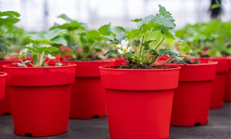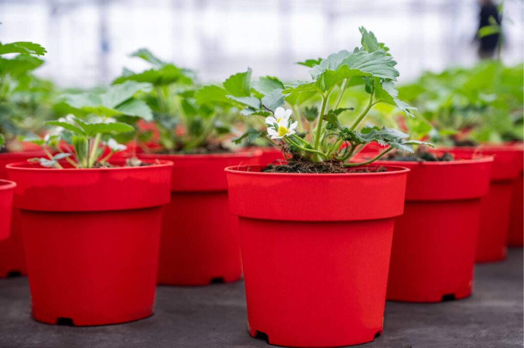 Binnen Summerking gebruiken we een aantal potmaten voor het opzetten van de aardbeienplanten. Dit kan gaan van de kleinste maat P9 (inhoud 0,7 liter) tot en met onze grootste maat P15 (inhoud 2 liter).